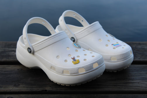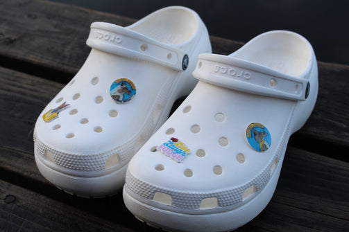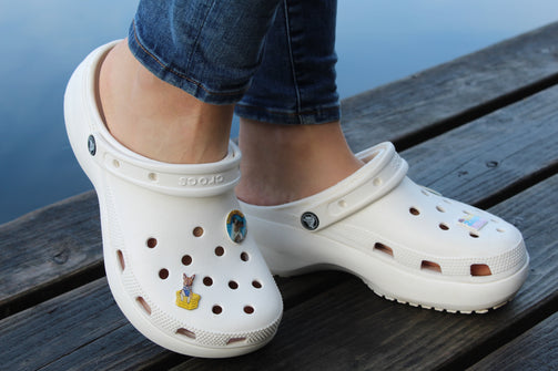Customize your Crocs with Mudge Fudge jibbitz! Choose from Mudge in a basket, the Mudge Fudge logo, or Live Laugh Fudge.